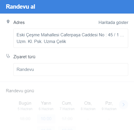 DOKTOR TAKVİMİ uygulamasından hızlı ve kolay randevu oluşturabilirsiniz. Randevu oluşturmak için: TIKLA